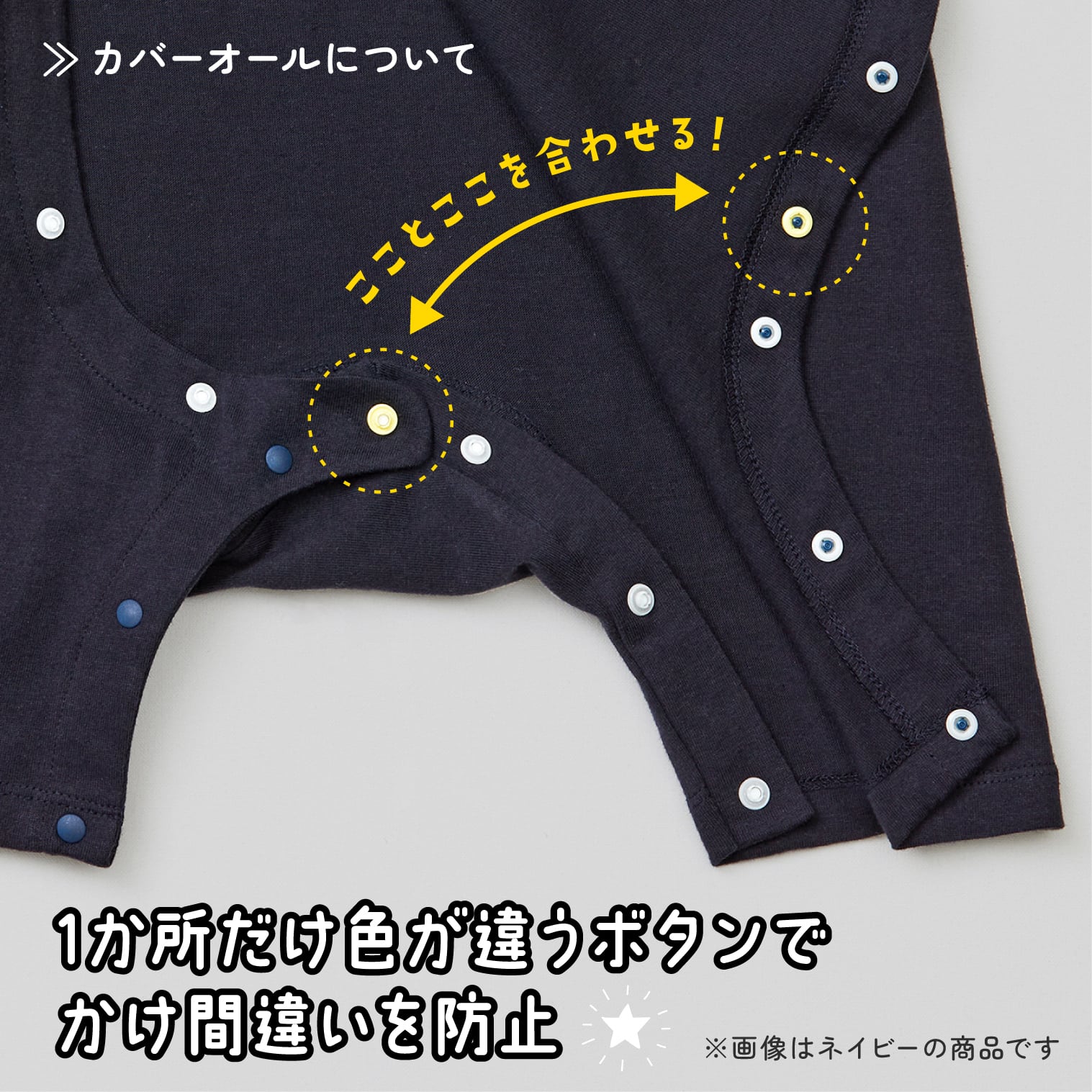 その他:前側はスナップボタンで全開するため、お着替えやオムツ替えも簡単。