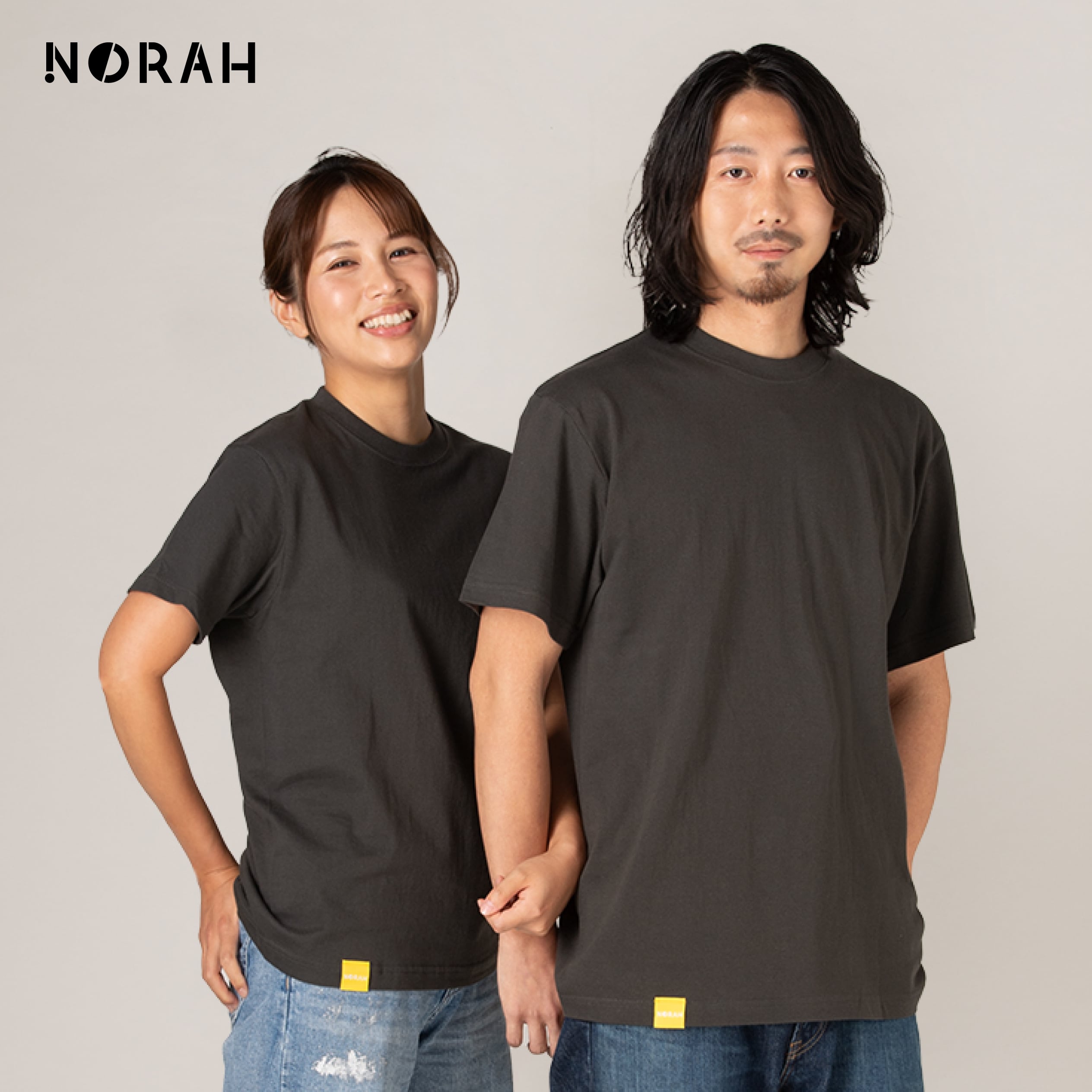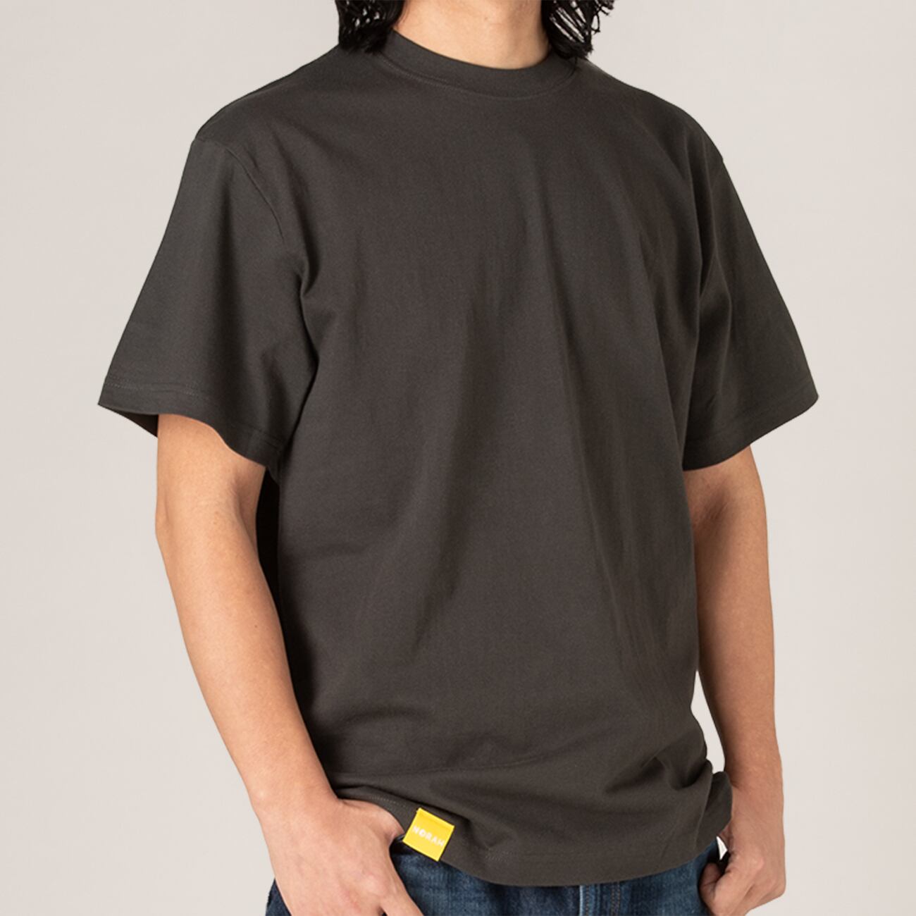 オリジナルの黄色いタグが映える、無地のシンプルなアイテムです。